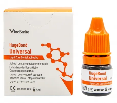 باندینگ یونیورسال نسل هشتم VinciSmile Huge Bond Universal یک ادهزیو پیشرفته و چندمنظوره در دندانپزشکی ترمیمی است که توسط شرکت HUGE Dental چین طراحی شده. این محصول با فرمولاسیون مدرن و بهروز خود، امکان باندینگ مطمئن و بادوام به انواع سطوح دندانی از جمله مینا، عاج و حتی مواد ترمیمی مثل زیرکونیا، سرامیک و فلزات رو فراهم میکنه. چیزی که باندینگ یونیورسال نسل هشتم رو متمایز میکنه، سازگاری بینظیرش با تکنیکهای مختلف اچینگ (Total-Etch، Self-Etch و Selective-Etch) است. این ویژگی به دندانپزشکان اجازه میده با توجه به شرایط خاص هر بیمار، بهترین روش رو انتخاب کنن و نتیجهای بهینه بگیرن.