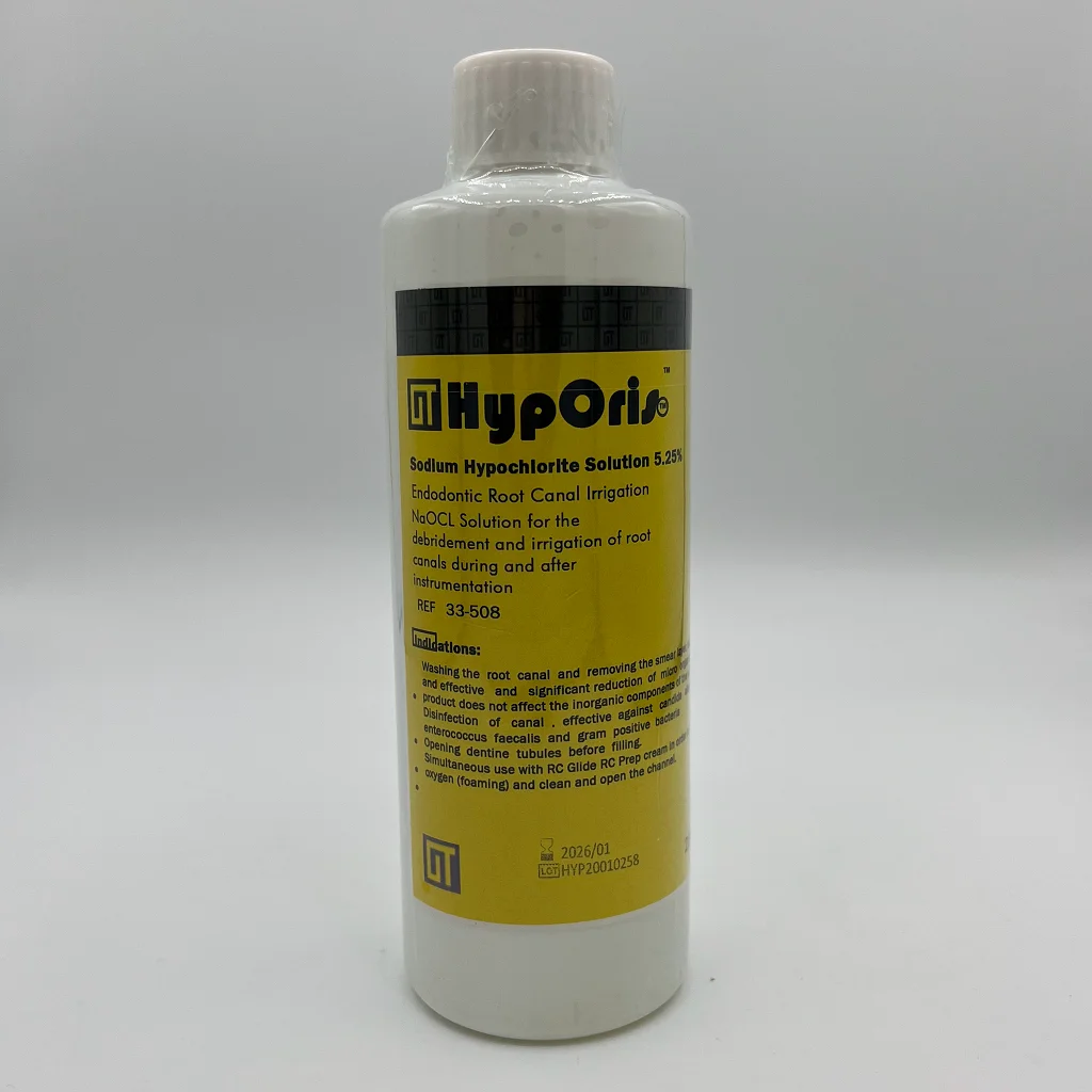 محلول سدیم هیپوکلریت oristech با غلظت 5.25% جهت شستشو و ضدعفونی کانال ریشه در درمان اندو، باز نمودن مجرای توبول قبل از پرکردن دندان و شستشوی داخل کانال ریشهی دندان استفاده می شود.